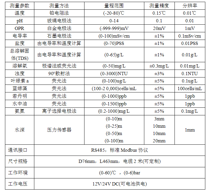 點(diǎn)創(chuàng)DCT-MWQ-5100/5101電極式多參數(shù)水質(zhì)監(jiān)測(cè)儀,可自由組合安裝2-12個(gè)水質(zhì)傳感器,監(jiān)測(cè)因子包括:溫度、pH、ORP、電導(dǎo)率、鹽度、總?cè)芙夤腆w、溶解氧、濁度、葉綠素a、藍(lán)綠藻、若丹明、水中油、氨氮、深度等。采用RS485接口和標(biāo)準(zhǔn)Modbus協(xié)議,功耗低,可內(nèi)置電池,支持太陽能供電。DCT-MWQ-5101較5100使用更優(yōu)性能電極,壽命更長(zhǎng),可工作在多種惡劣環(huán)境下。