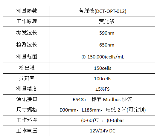 DCT-OPT-012是一款采用RS485通訊接口和標(biāo)準(zhǔn)Modbus協(xié)議,自帶清洗刷的藍(lán)綠藻智能電極。基于相干熒光檢測(cè)技術(shù),具有選擇性好,抗干擾強(qiáng)、靈敏度高、無(wú)需預(yù)處理、測(cè)量快速等優(yōu)點(diǎn)。隨機(jī)附送專(zhuān)業(yè)操作軟件,具有校準(zhǔn)、記錄、分析、診斷等功能。